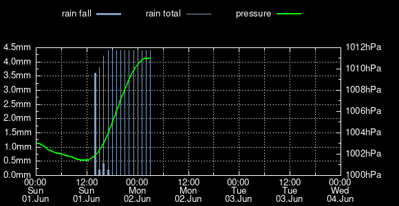 This Weather Station is positioned at the same location in Munlochy as our other sensors, gauges and weather stations so a direct comparison can be made and also calibrated against the physical instruments in our Stevenson Screen.