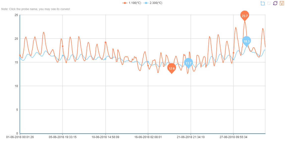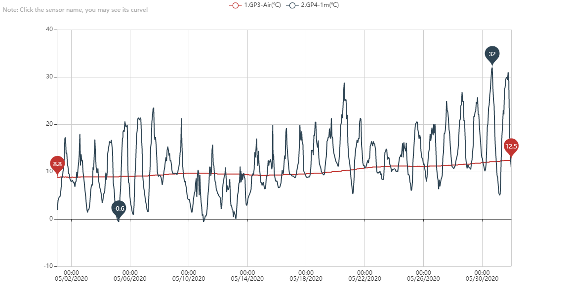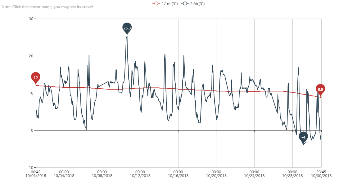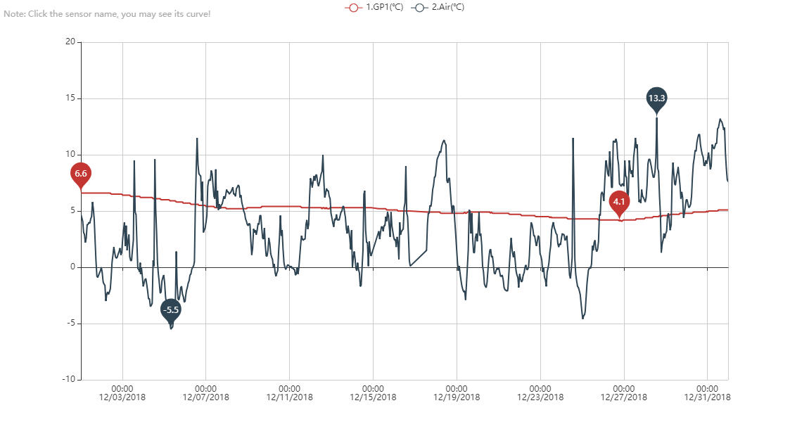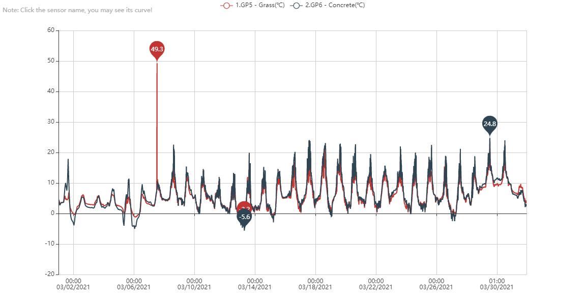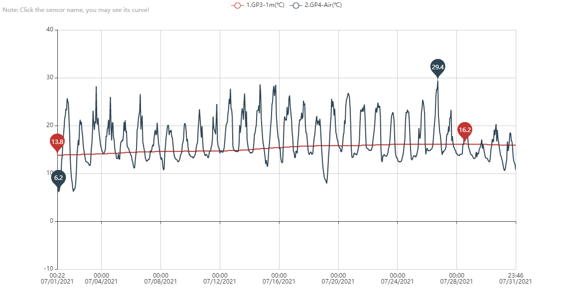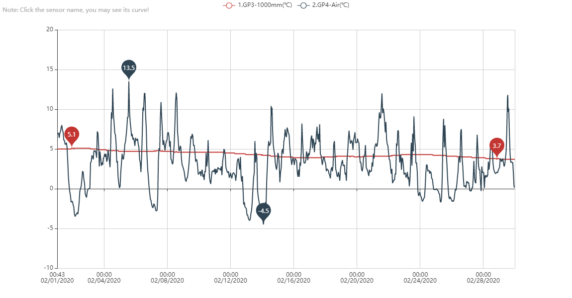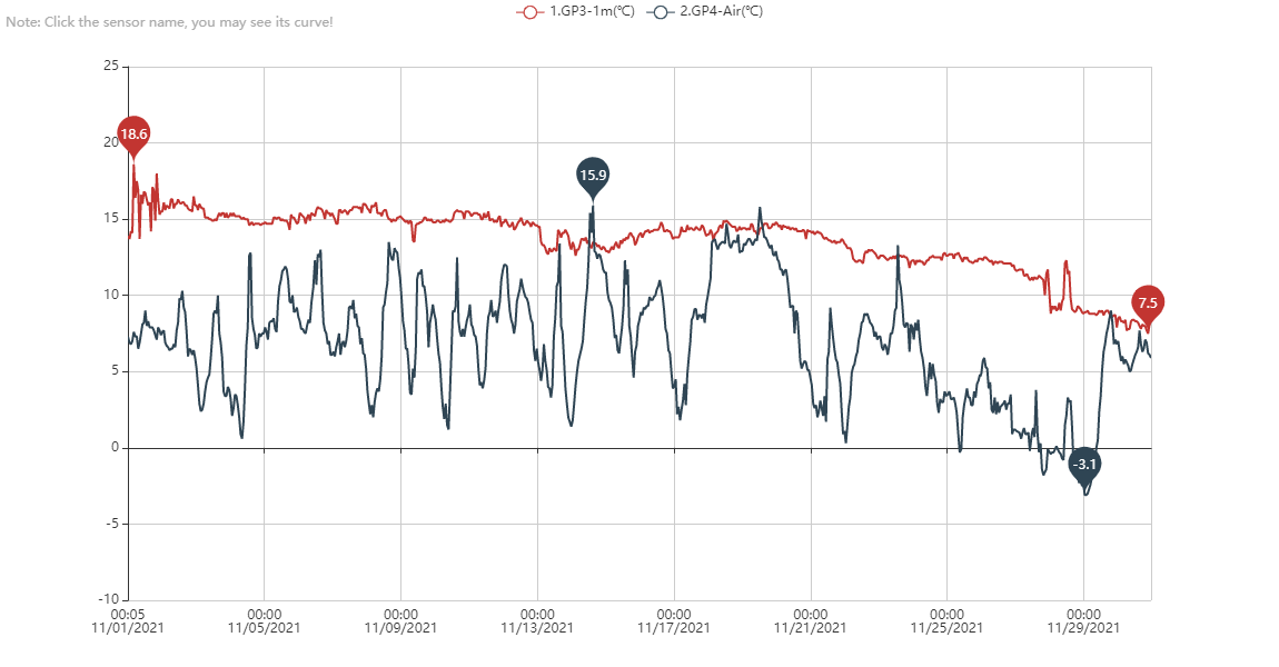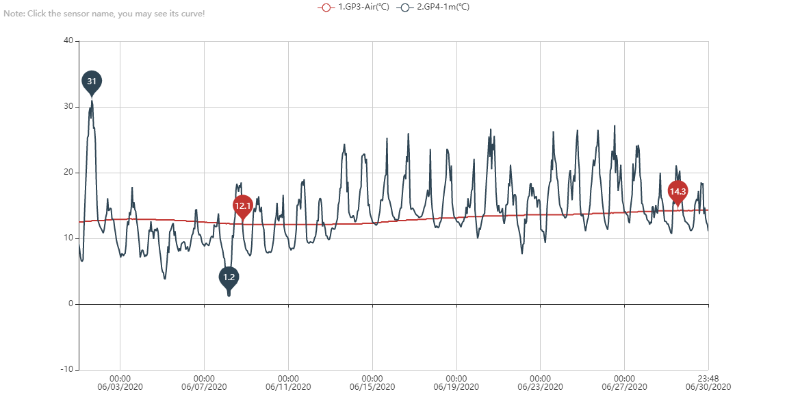 There are three GROUND PROBES set at 100mm, 300mm and 1000mm depths placed in an open grass field at the Millbank PWS Munlochy. The probes are attached to Elitech RCW-600 Intelligent WiFi Data Loggers. There is also one additional probe mounted inside a thermal screen set at 300mm above the grass that measures the air temperature as a control. Click on the probe depth below the date to access the data.