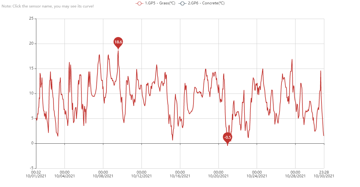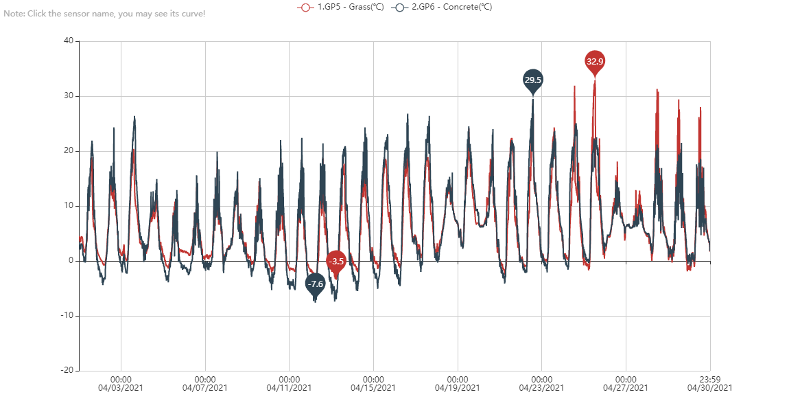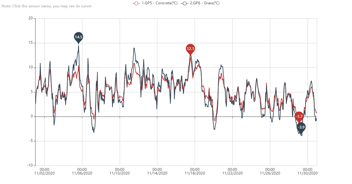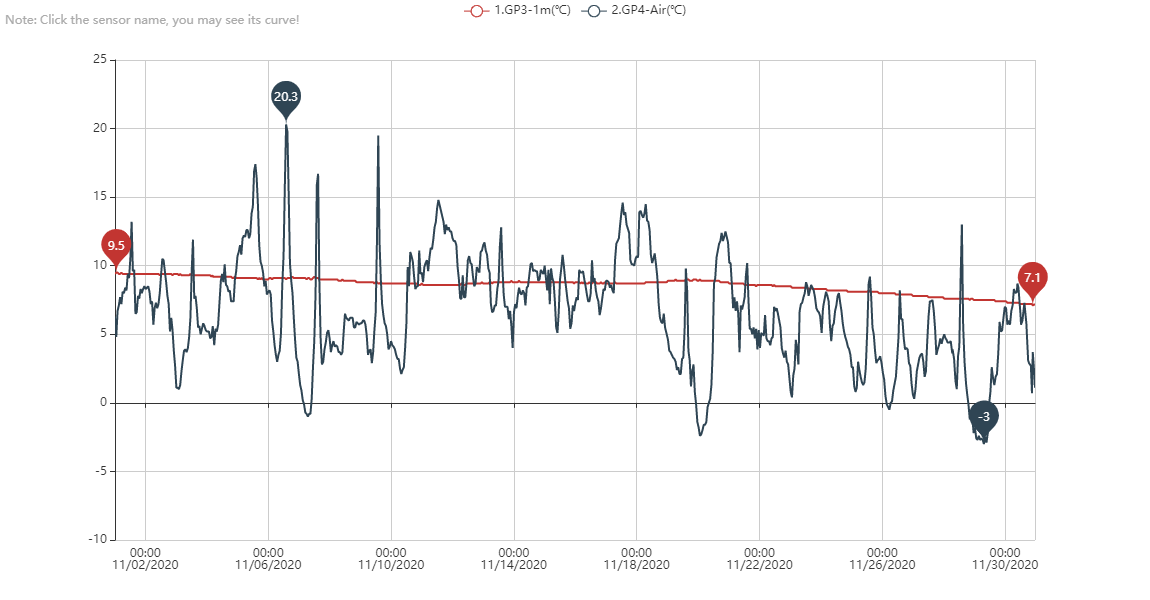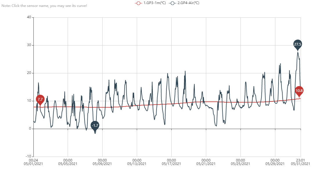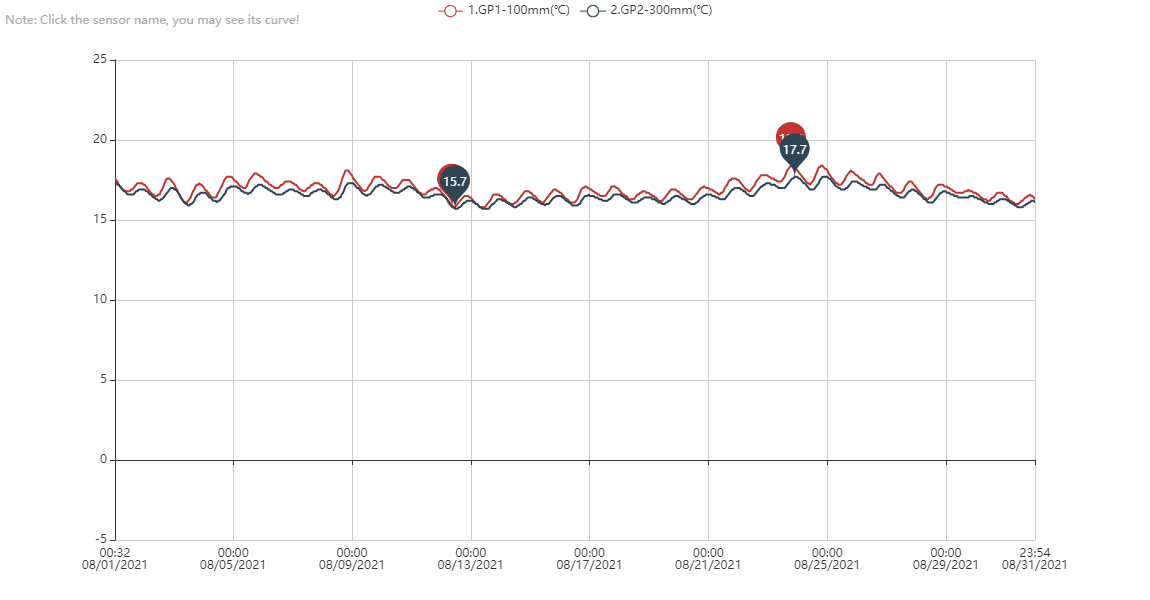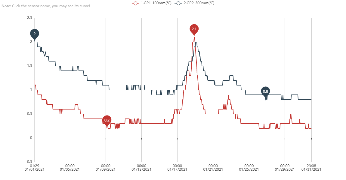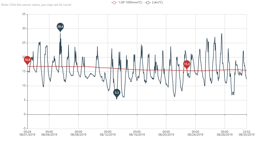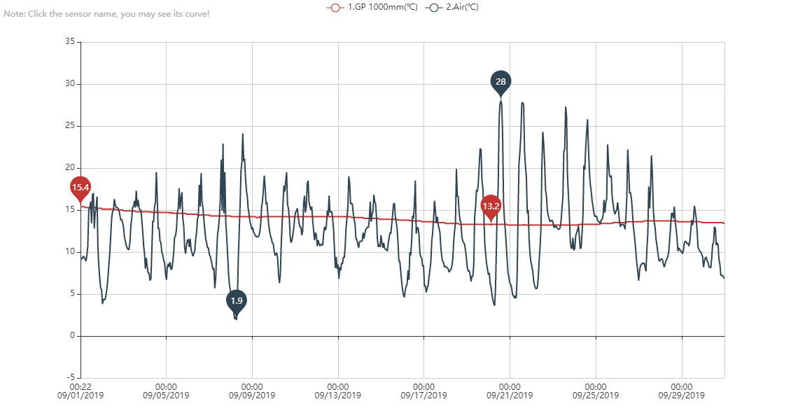 There are three GROUND PROBES set at 100mm, 300mm and 1000mm depths placed in an open grass field at the Millbank PWS Munlochy. The probes are attached to Elitech RCW-600 Intelligent WiFi Data Loggers. There is also one additional probe mounted inside a thermal screen set at 300mm above the grass that measures the air temperature as a control. Click on the probe depth below the date to access the data.