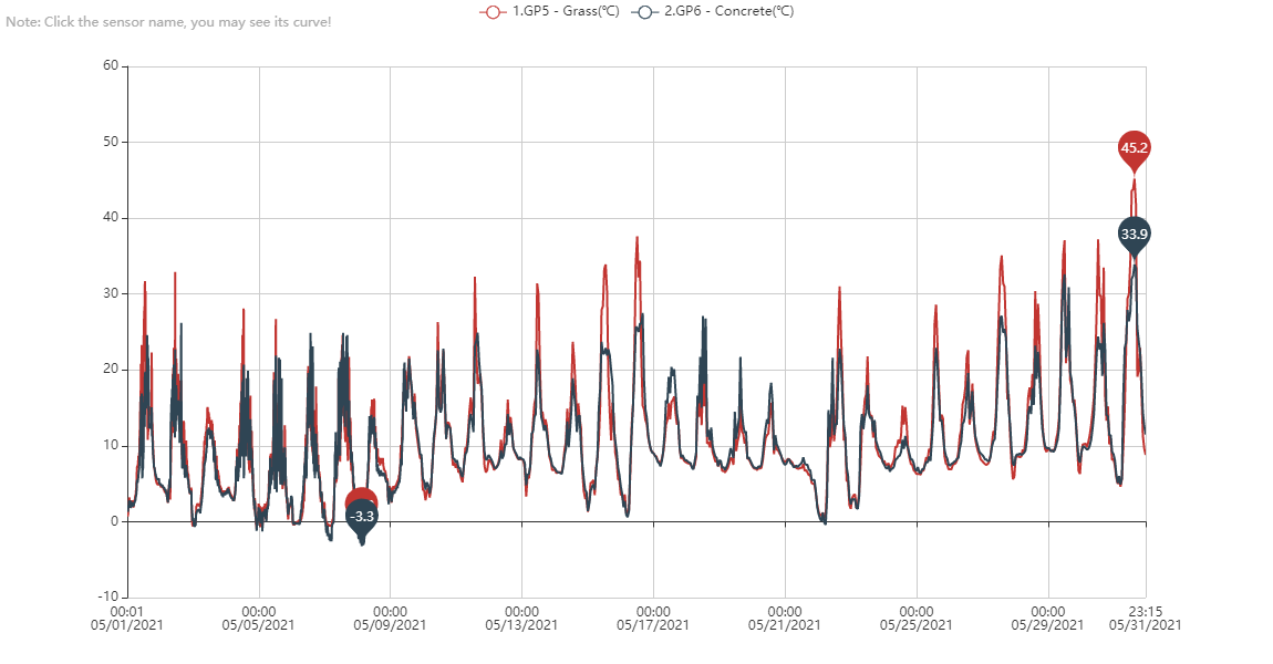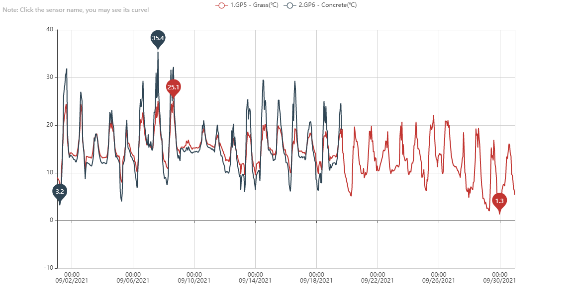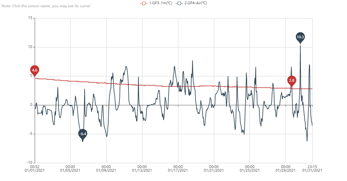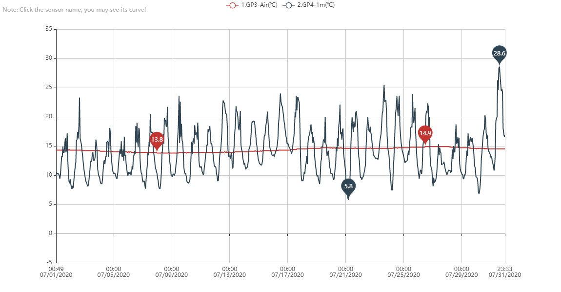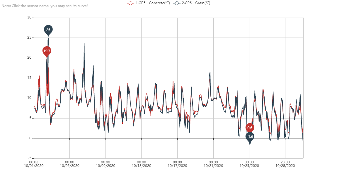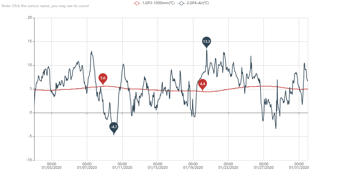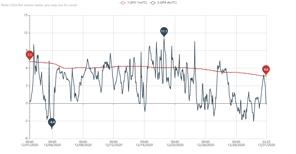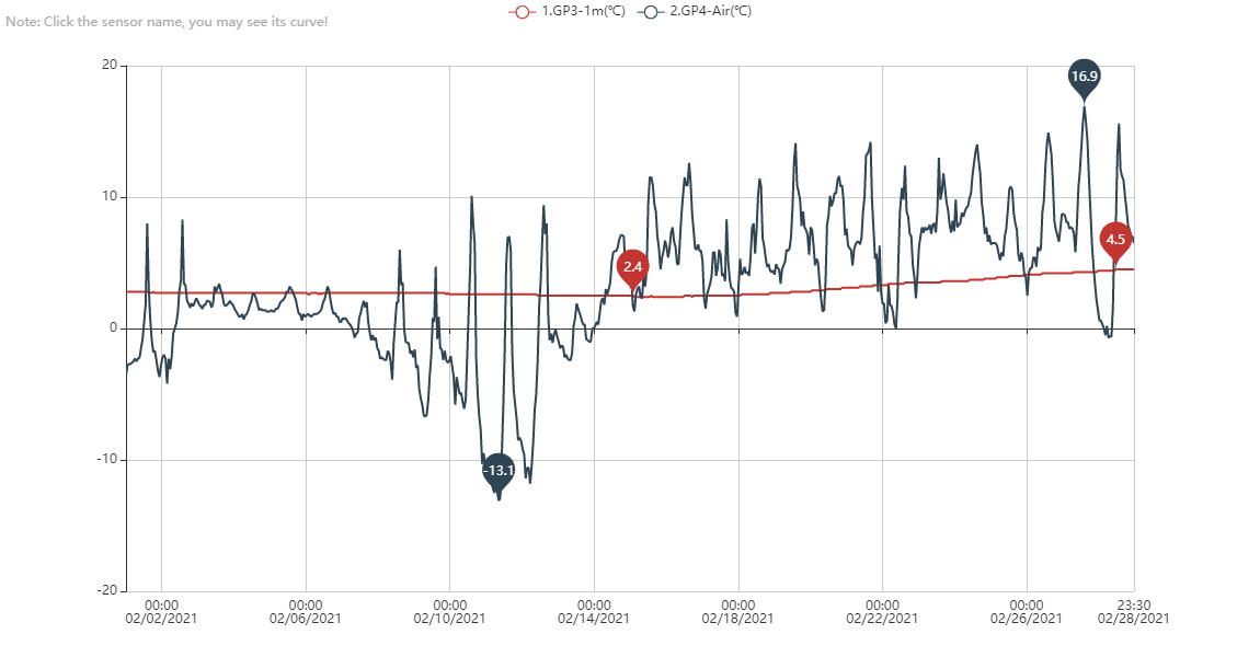 There are three GROUND PROBES set at 100mm, 300mm and 1000mm depths placed in an open grass field at the Millbank PWS Munlochy. The probes are attached to Elitech RCW-600 Intelligent WiFi Data Loggers. There is also one additional probe mounted inside a thermal screen set at 300mm above the grass that measures the air temperature as a control. Click on the probe depth below the date to access the data.