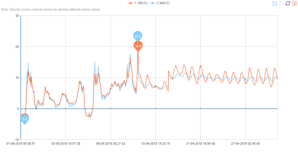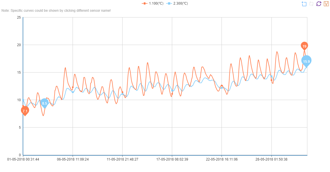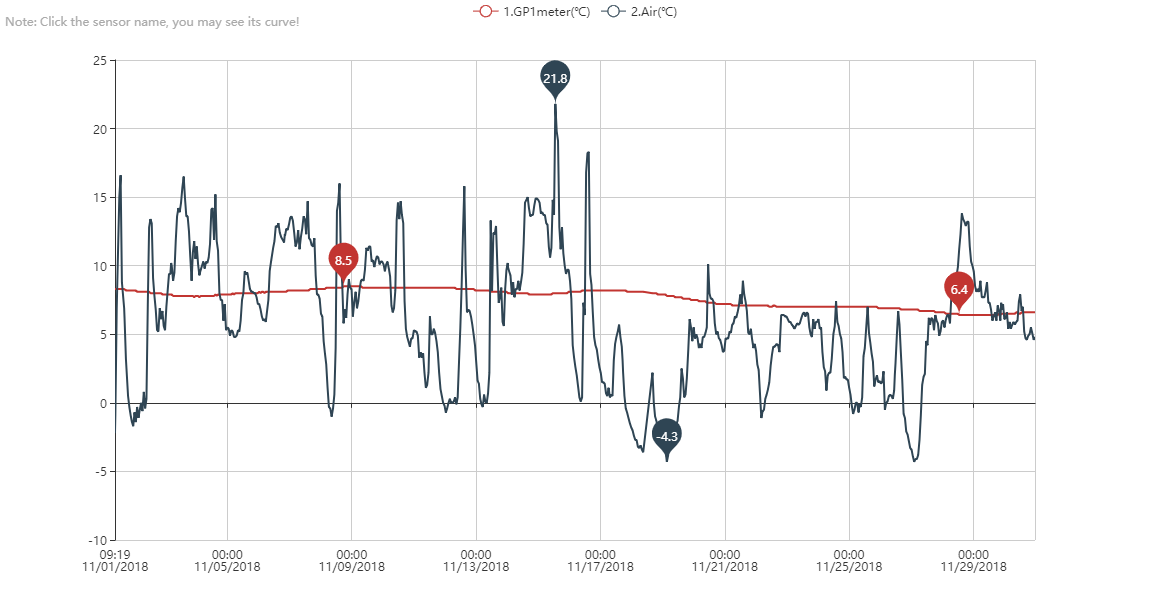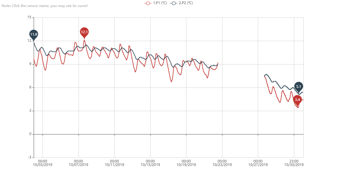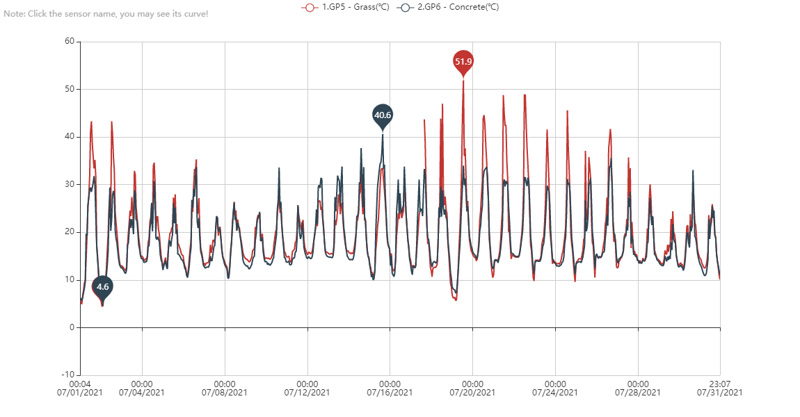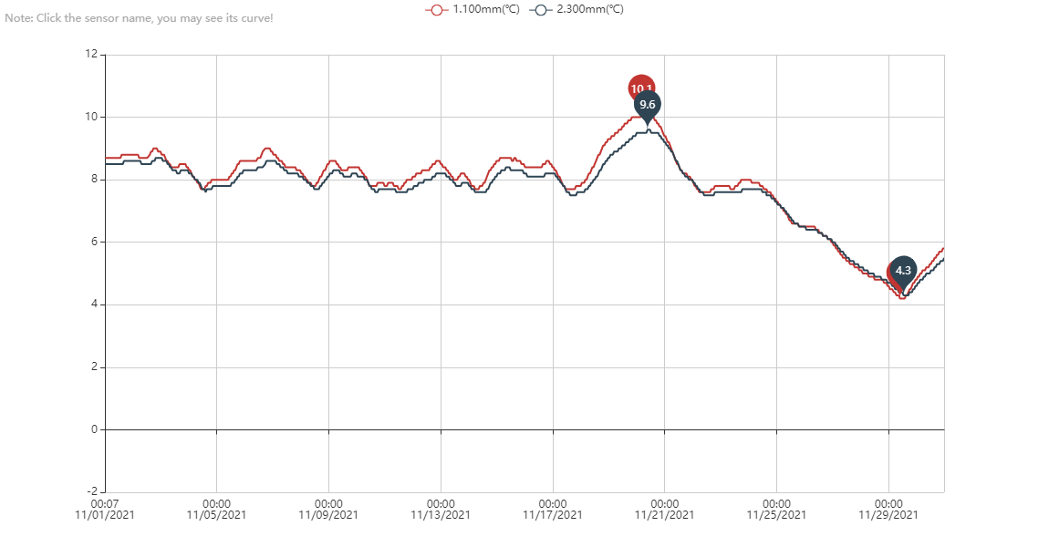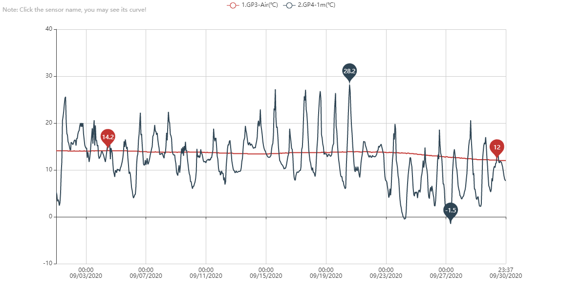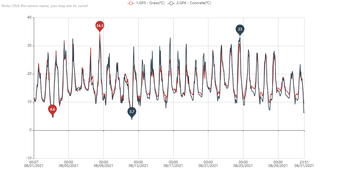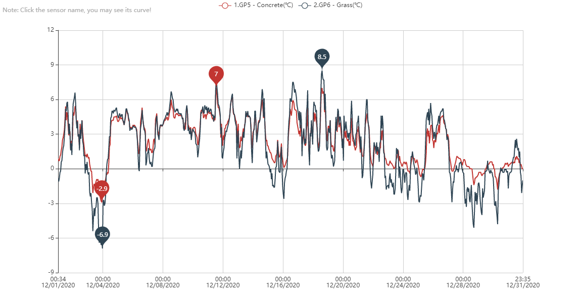 There are three GROUND PROBES set at 100mm, 300mm and 1000mm depths placed in an open grass field at the Millbank PWS Munlochy. The probes are attached to Elitech RCW-600 Intelligent WiFi Data Loggers. There is also one additional probe mounted inside a thermal screen set at 300mm above the grass that measures the air temperature as a control. Click on the probe depth below the date to access the data.