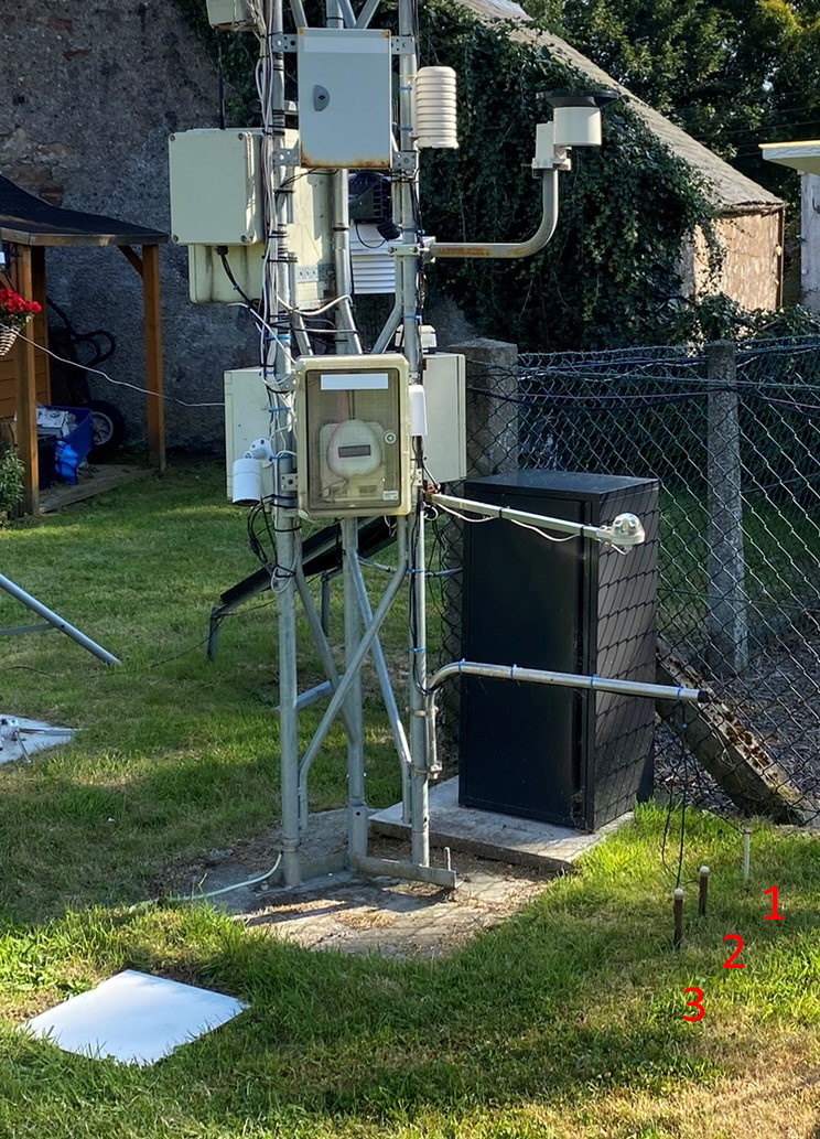 There are also three ground temperature probes under a grass surface set at 100mm, 300mm and 1 meter. They are attached to Elitech Temperature Data Loggers and the logs are posted here at the end of every month